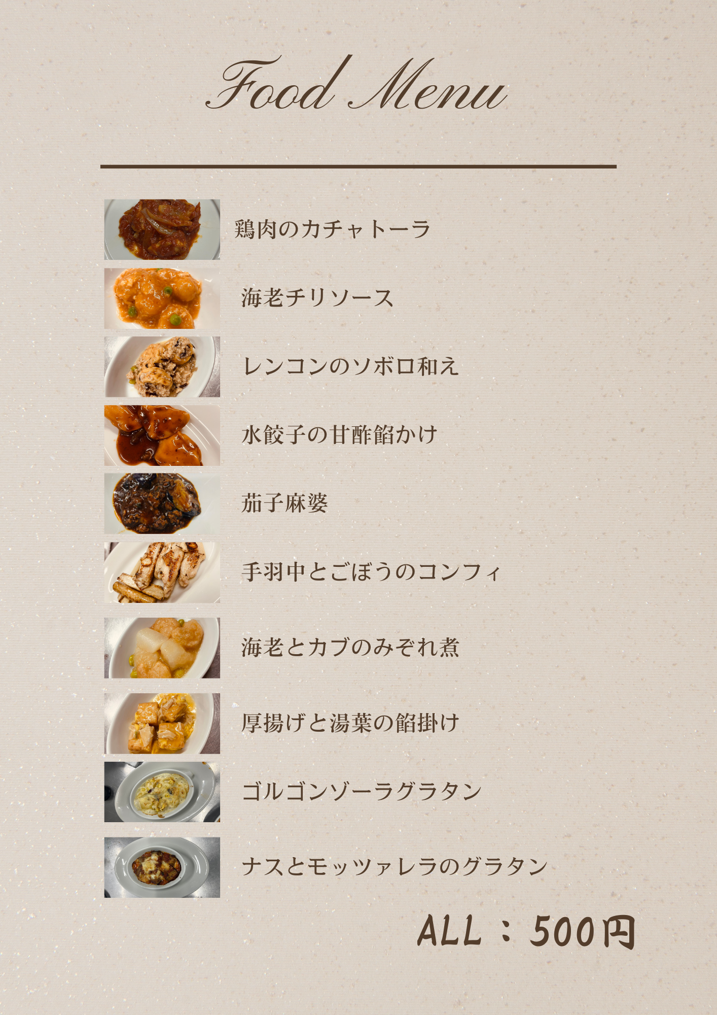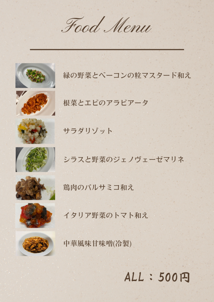 ①お通し(500円)を必ず人数分取ることを忘れないように